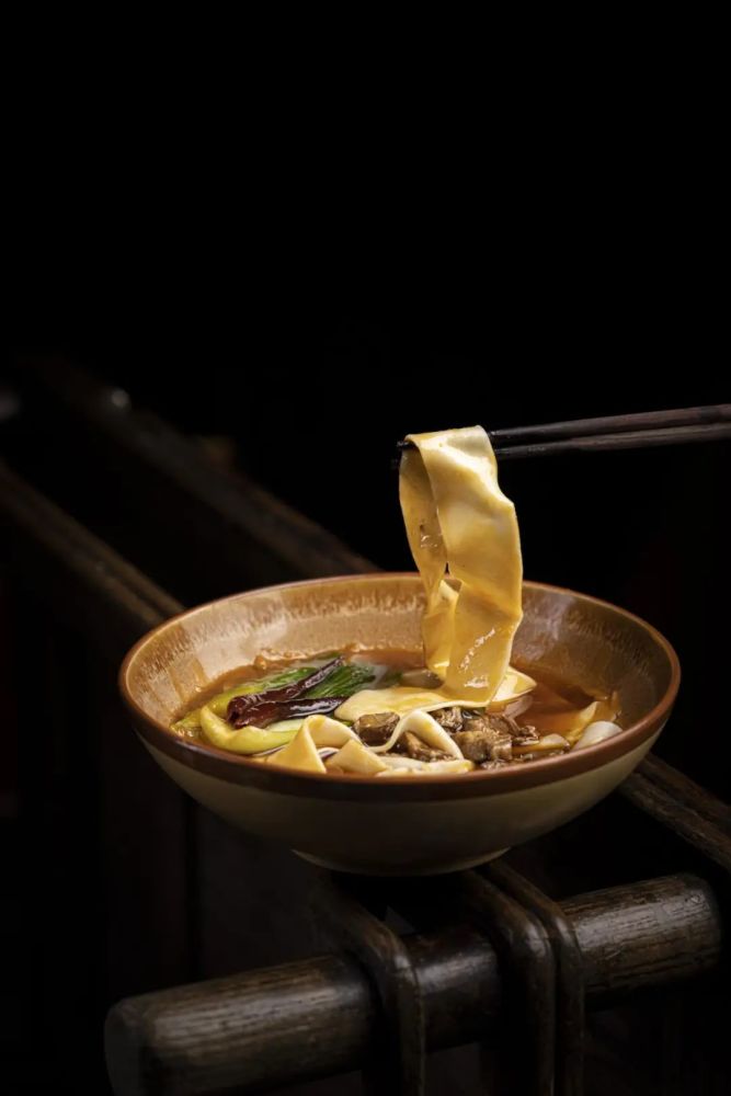 白白宽宽的面被绿色蔬菜叶盖着,红的羊肉臊子汁液浇在上面,看着就让人食欲大开。一大碗端上来,迅速地用筷子在面里搅拌几下,再捞起几根板面放在嘴里,鲜香辣,层层味道在舌尖绽放,再吃上一口蔬菜,喝上一口面汤,一股暖意从胃里升腾而起。