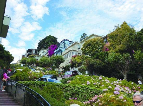 你见过世界上最弯曲的街道吗?现在就带你去旧金山有名的九曲花街看一看,让你知道什么叫做十八弯。在这条街上,你的速度一定快不了,那就停下来细细欣赏周围的风景吧,九曲花街上种满了各种美丽的植物,在开花的时节,扑面的花香,满眼的绚丽色彩,真是好精致呢。