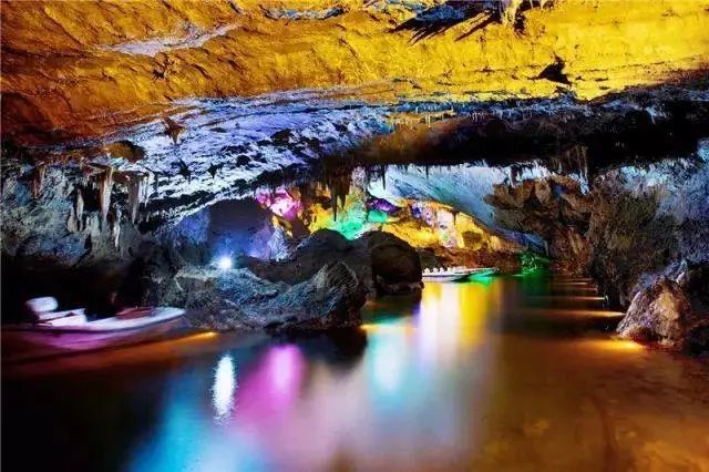 水洞景区是数百万年前形成的大型石灰岩充水溶洞,洞内深邃宽阔千姿百态,泛舟游览,使人流连忘返。