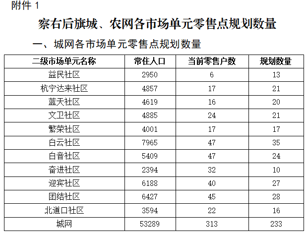 附件:察右后旗城、农网各市场单元零售点规划数量