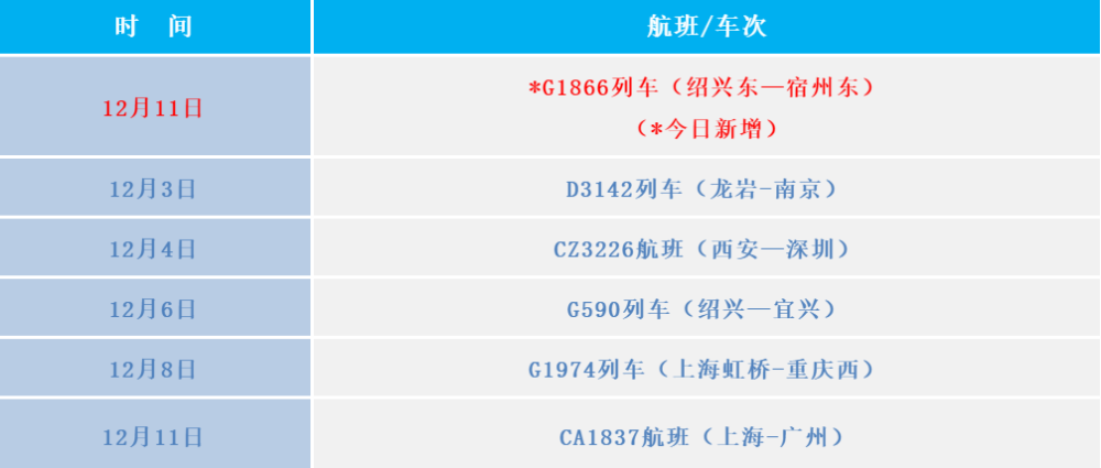 为严格落实“外防输入、内防反弹”的防控要求,有效控制和降低疫情传播风险,四川省疾控中心提示您:搭乘过以下交通工具的来(返)川人员,第一时间主动向社区或居(村)委会、单位或入住酒店报备旅居史,配合做好相关防控工作。