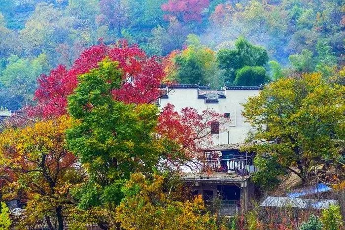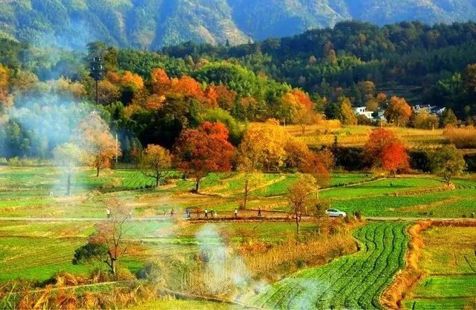 徽州,从10月中旬到11月下旬的这段时间,这里的秋叶,经过霜降,由绿变黄,由黄变红,美似一幅画。