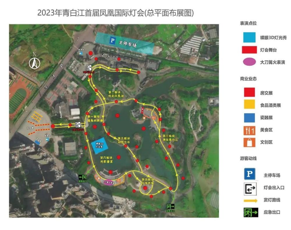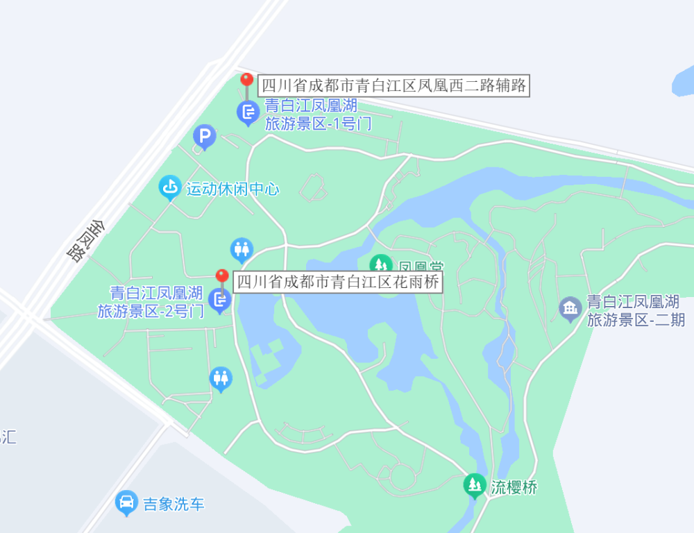自驾路线:导航“青白江凤凰湖旅游景区-1号门”或“青白江凤凰湖旅游景区-2号门”