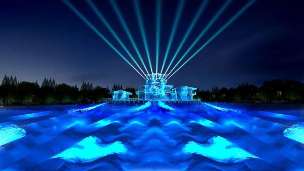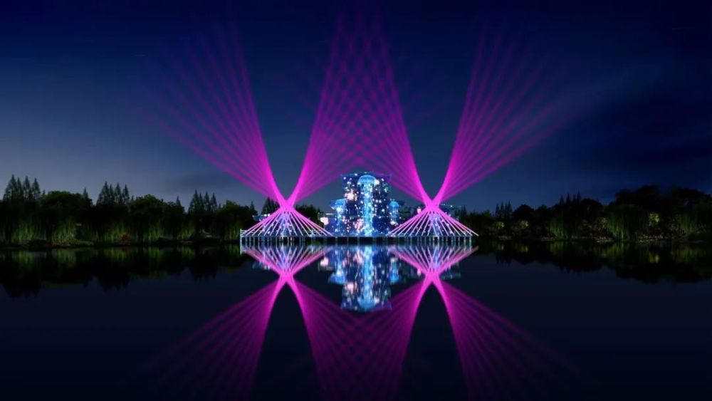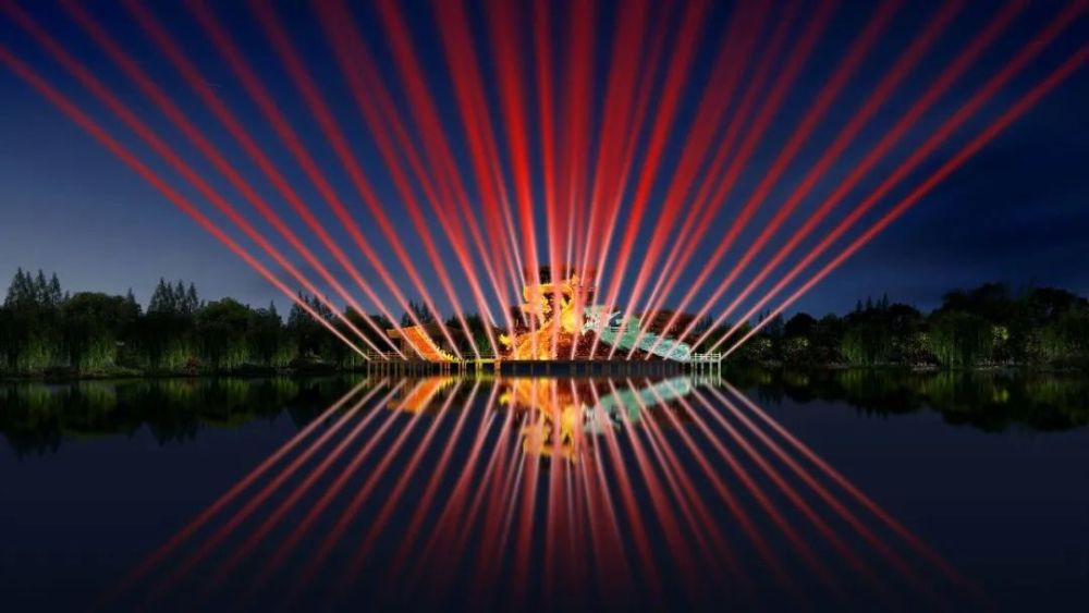 来看裸眼3D灯光秀。以池泉园为媒介,通过全息光影技术与建筑本身的线条和边缘结合,营造出3D空间的透视效果,虚实呼应,为游客朋友们呈现一场震撼的视听盛宴,必是凤凰湖夜游的一处打卡点。