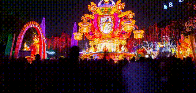 以五彩斑斓的孔雀羽毛为设计造型的灯会大舞台,承办开幕式、音乐节等活动,设置有音乐派对、舞蹈表演、川剧变脸、杂耍才艺等节目,为游客朋友们提供多样的娱乐选择。