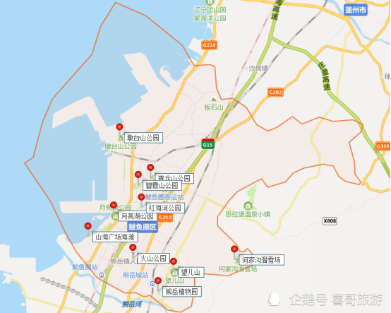 2、鲅鱼圈区十大景点自驾游行程路线:鲅鱼圈区-何家沟滑雪场-望儿山-熊岳植物园-火山公园-山海广场海滩-月亮湖公园-红海河公园-碧霞山公园-青龙山公园-墩台山公园-鲅鱼圈区。