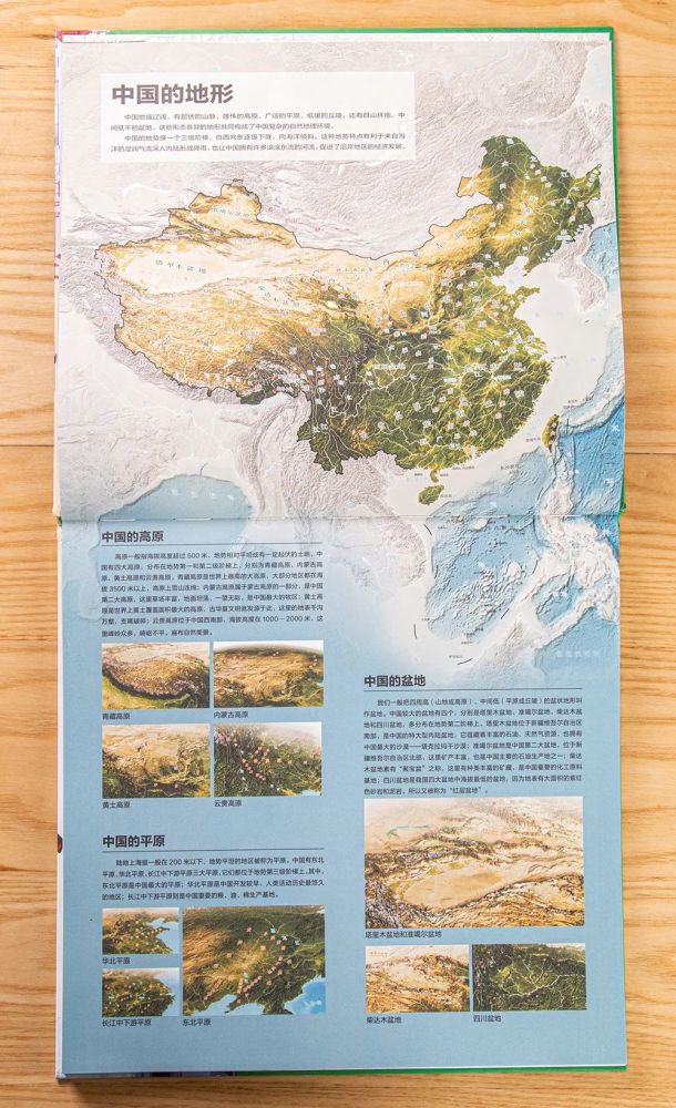 讲到中国地形的时候,还引入竖版跨页图,完完整整呈现出中国的辽阔版图,太震撼了!