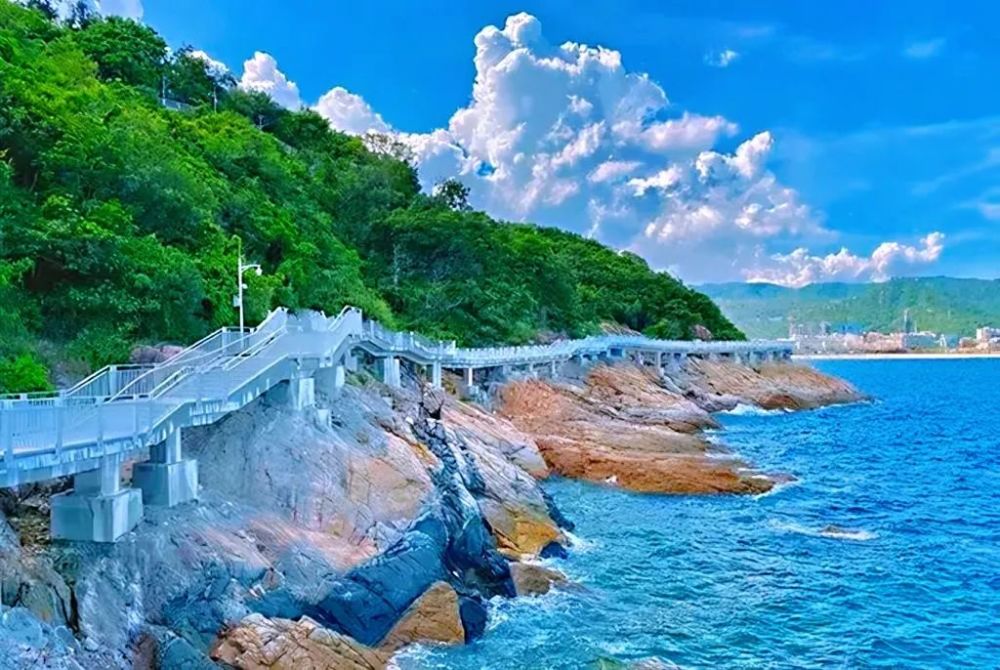 23、盐田海滨栈道:免费,绝美10公里,深圳最美丽的“黄金海岸,西起中英街古塔公园,沿着黄金海岸线,串联起沙头角、盐田港、大梅沙公园、小梅沙公园,东至背仔角,注意防晒。