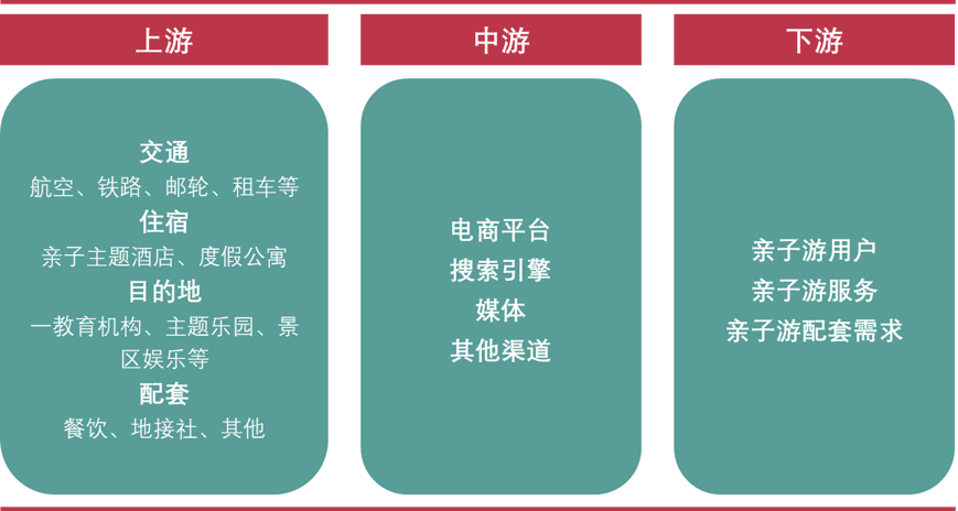 亲子游产业链上、中、下游协同发展,参与主体多样