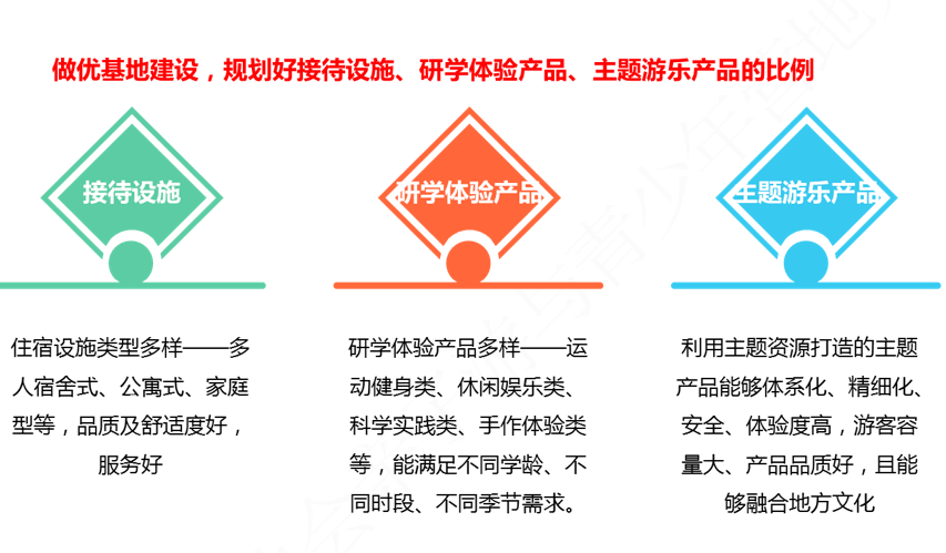 旅游景区、自然风景名胜区、森林公园、农业庄园、科普展览园、综合实践基地/营地等作为亲子游与研学旅行活动的核心承载目的地,因如何将亲子游与研学旅行万亿市场留下来,华汉文旅集团根据20余年的规划经验与多年的亲子文旅项目实操经验,打通规划-建设-运营的壁垒,以运营思维,提出亲子游与研学旅行基地融合发展的若干建议,为基地方在规划、建设、运营等多方面进行提升、改造提供参考。