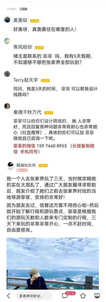 提醒一下对品质有要求的,想在张家界省心不跟团的小伙伴建议提早跟菲菲预约,她们家席位和房间确实很紧俏,旅游旺季都是只预留给定她家行程的客人。想去张家界旅游的朋友,建议提前让菲菲给你免费规划一份合理的行程,真的很专业,让你避免很多旅游陷阱!!