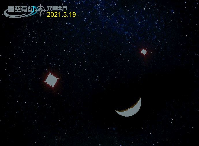 天文科普专家介绍,一弯上弦月与行星火星、恒星毕宿五将于#3月19日上演双星伴月#。届时,三者在西方天空组成一张端正的“红眼笑脸”,持续时间很长。公众用双手组成一个圆或用其他圆形工具,对着天空将三者纳入其中,“笑脸”就会呈现出来。