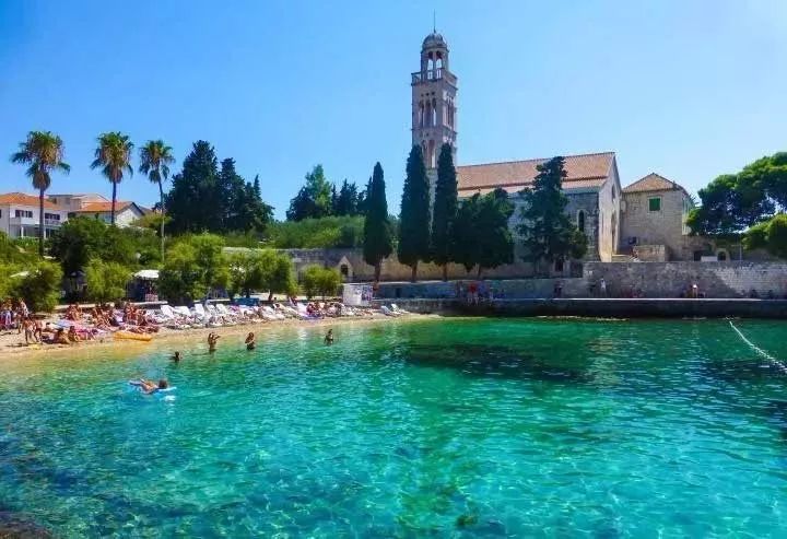 对了,这里特别适合潜水,当然海滩上有不少欧美人晒日光浴,也有人坐游船享受慢慢的海边浪漫时光。我敢说,你一定会爱上这个小岛,而且海滩上还立了一块大牌子“the best beach in Croatia”。
