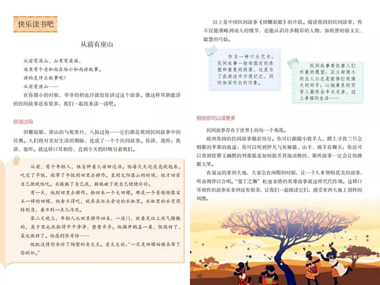 在统编版五年级上册第三单元中,我们一同学习两篇经典的中国民间故事——《猎人海力布》、《牛郎织女》。而在本单元的“快乐读书吧”中,教材还带领我们放眼世界,为我们推荐了世界各地的民间故事,其中就包含了《非洲民间故事》这本书哦!让我们跟随这些极具特色的民间故事,开启神秘的非洲之旅吧!
