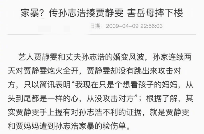 后来贾静雯几乎成为了孙志浩发泄的工具,没事就对她拳打脚踢,实施家暴。