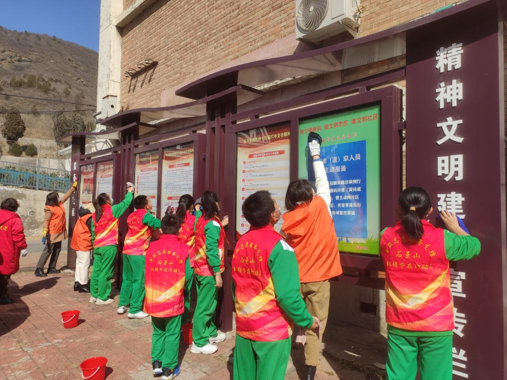 苹果园街道装备部社区组织先锋小学师生开展了爱护环境、清洁家园活动。一部分同学负责擦拭宣传橱窗,一部分同学拿上夹子、垃圾袋到路上捡拾垃圾和烟头,在说说笑笑中,大家圆满地完成了此次活动,看着干净整洁的家园,收获了满满的成就感。