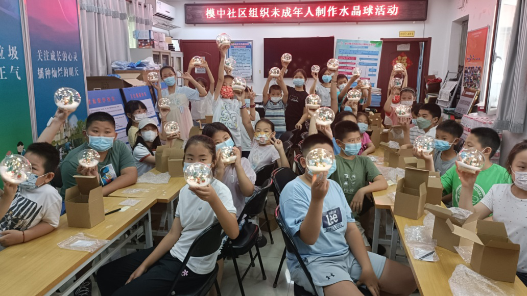 金顶街街道模中社区举办了水晶球制作活动,孩子们依照老师的指导一步步的完成手工,虽然有时会遇到一些困难,但是在小朋友们自己的努力和老师的指导下,最后每一个小朋友都完成了作品,大家一起打开小彩灯,水晶球内五彩缤纷,惹人喜爱。活动在孩子们欢快的笑声中圆满结束。通过制作水晶球活动,不仅培养了孩子的审美创造能力和动手能力,同时也增进了孩子们之间的友谊。