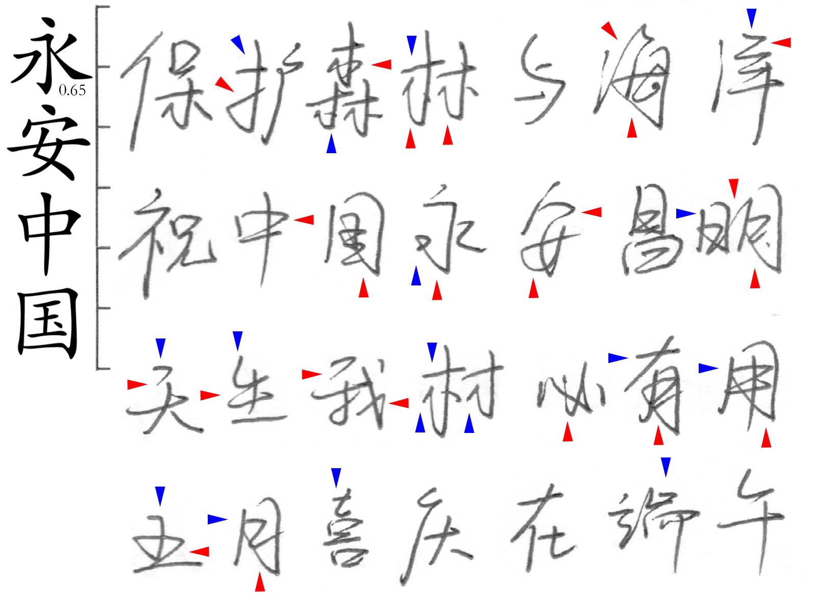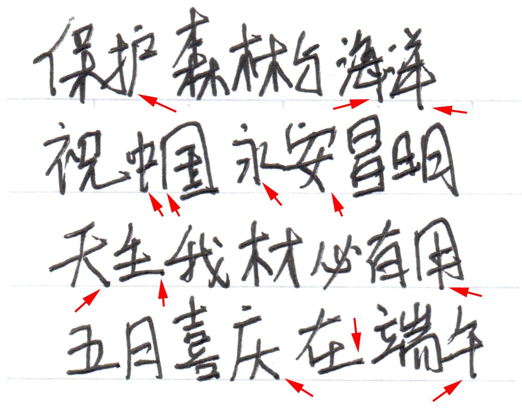 案例8,加速线条用红色箭头,减速线条用蓝色箭头(4)训练笔迹稳定性(自知之明)的方法: