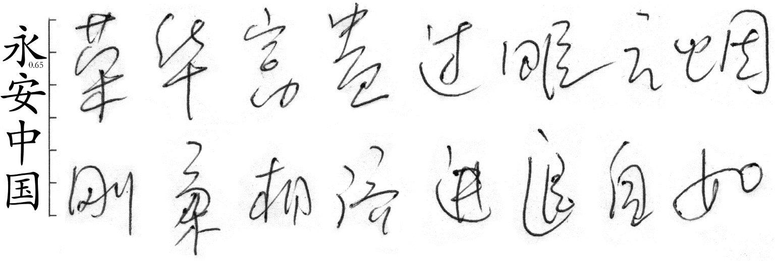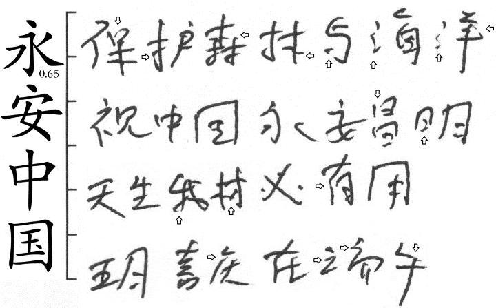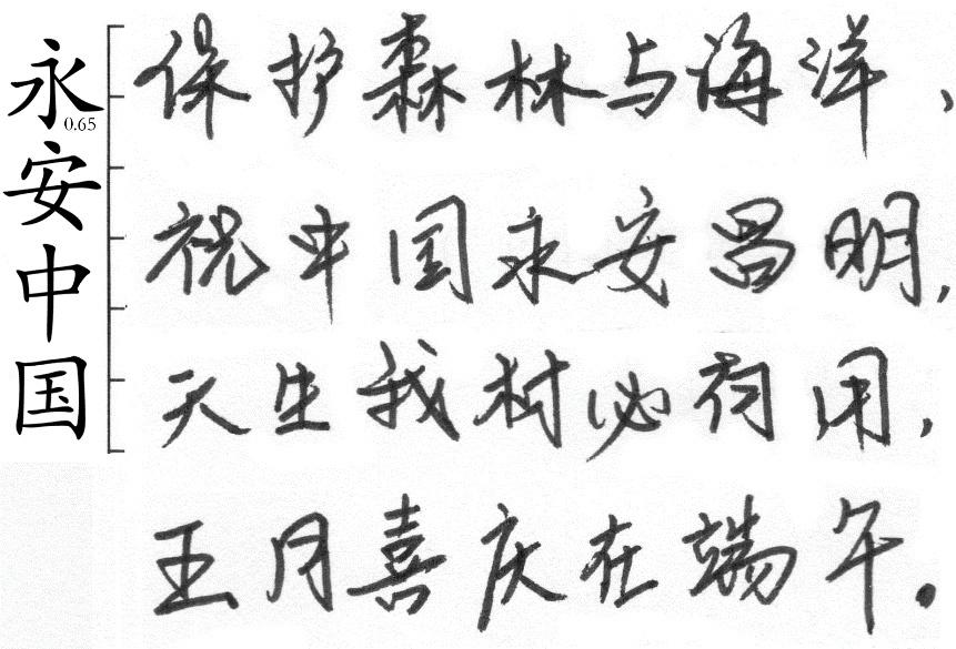 (2)笔迹特征:笔迹线条过渡均匀,即笔迹的线条之间有时间节奏感。