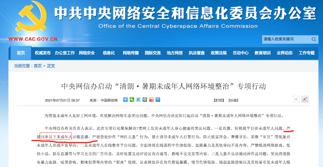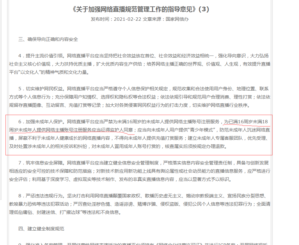 包括前段时间网信办针对的,也是16岁以下的未成年人直播,而不是说必须18岁以上才能直播。