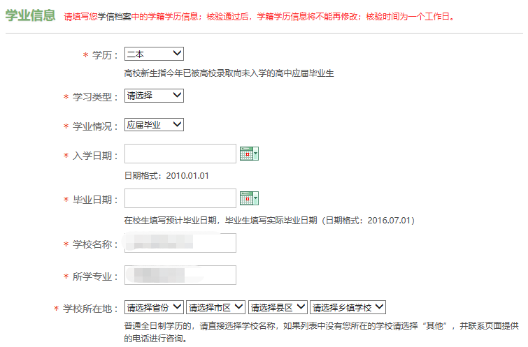 点击“参加2020年应征报名”,会根据已登录的学信网账号,弹出确认基本信息页面,这里需要填写的就是个人手机号、文化程度、学校名称和入学毕业时间等,主要为了确认和学信网的信息准确无误,请严格按照学信网中的信息填写。