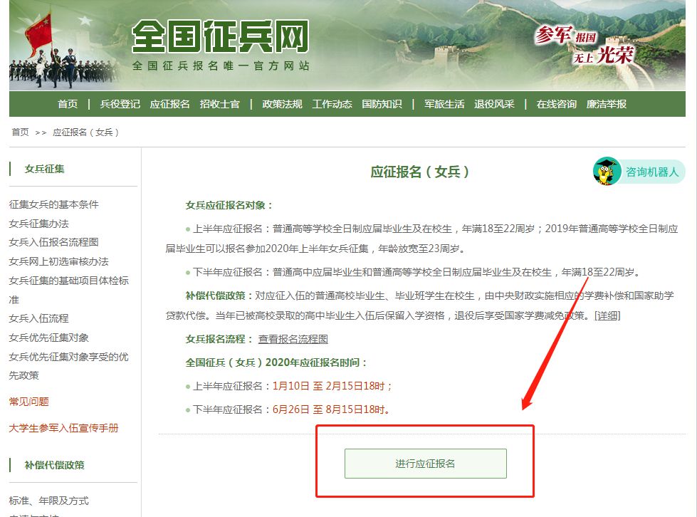女兵应征报名界面↓