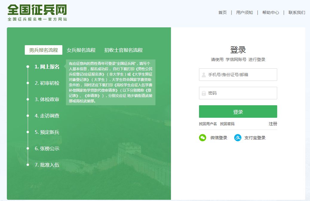 男兵应征报名界面↓