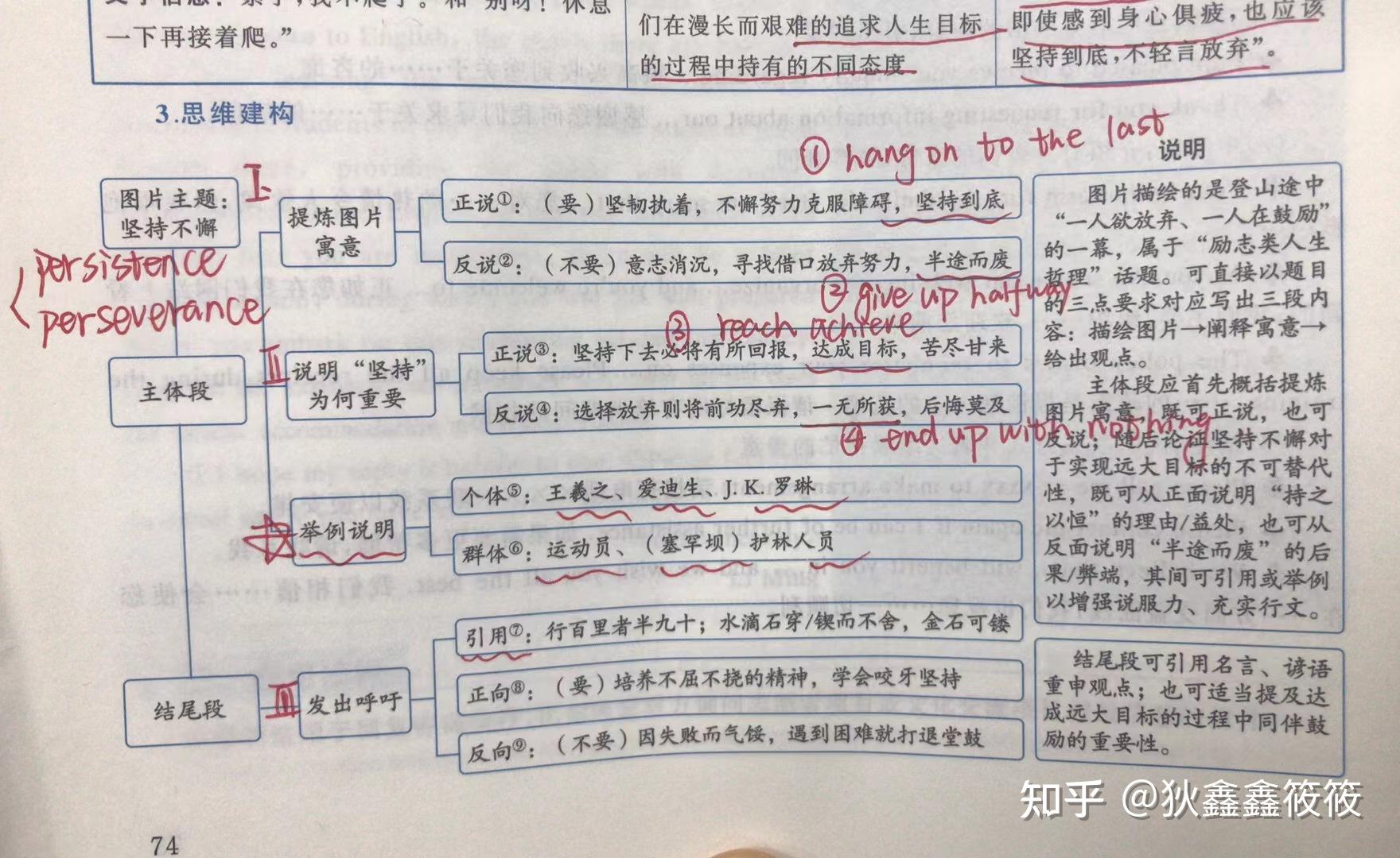 大作文一般都建议分成三段来写,在第一段描述图片内容,第二段需要提炼图片寓意,然后再说明“坚持”为什么重要。这个时候如果不用事实论据,文章会显得比较空,因此我们还需要摆恰当的例子来讲道理。最后一段就是发出呼吁,可以引经据典。