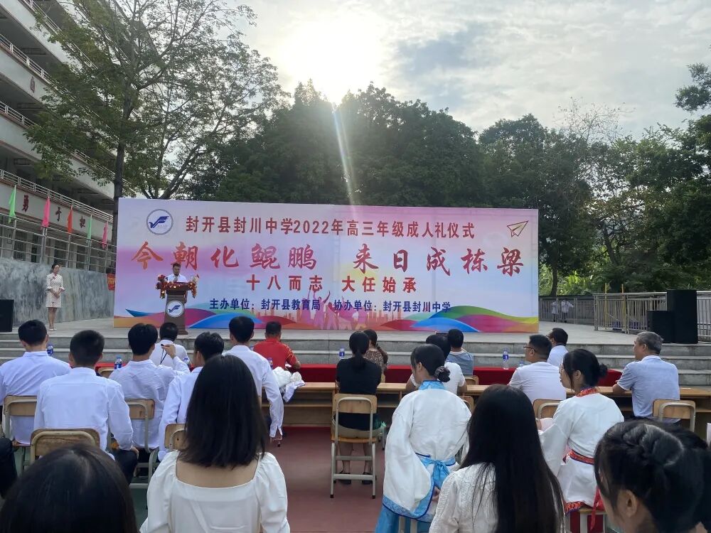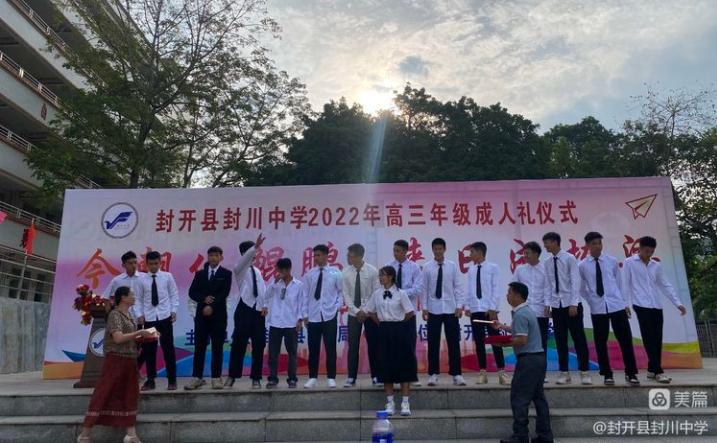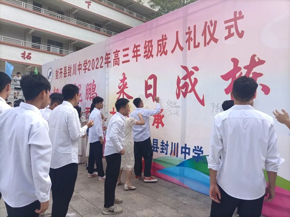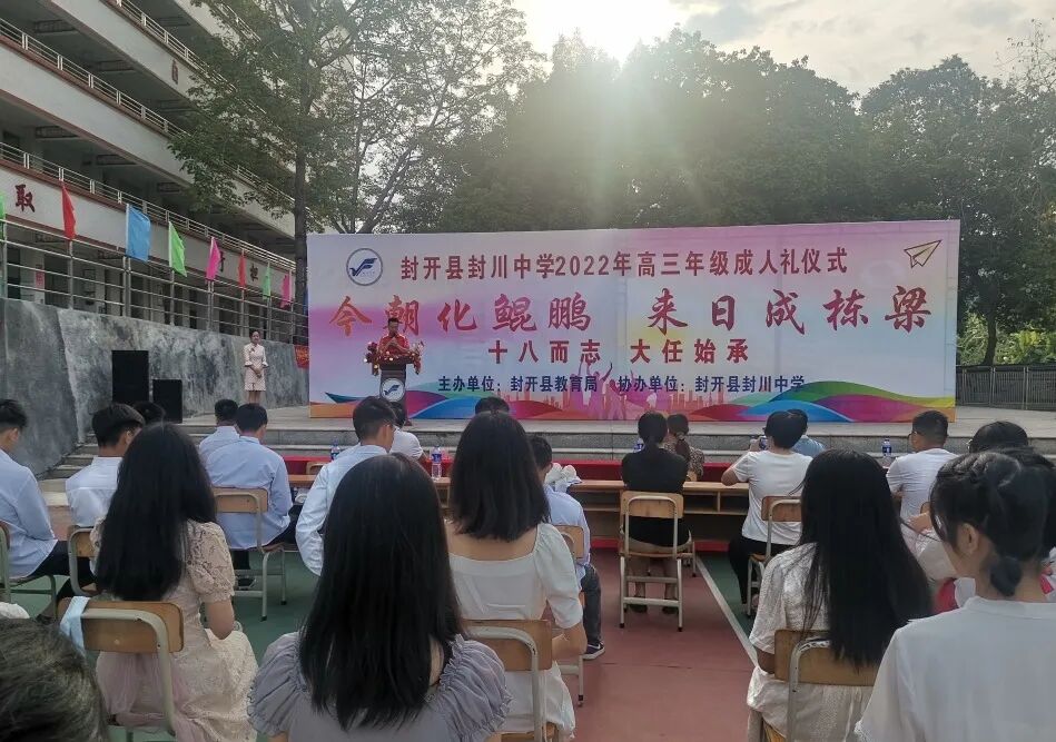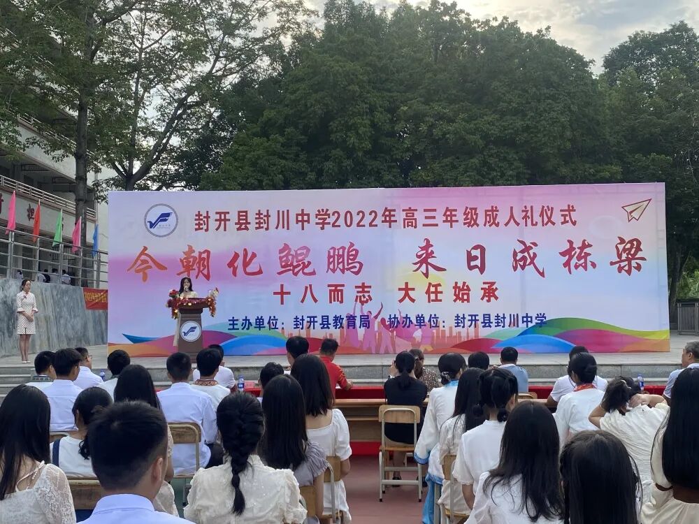 为展示十八岁成人青年的精神面貌和时代风采,引导他们树立正确的价值追求。9月28日,封开县封川中学以“今朝化鲲鹏,来日成栋梁”为主题,在高三的老师们陪同下,与学生们共同走过绚烂的十八岁,以成人之礼,许未来一个约定,逐梦前行!