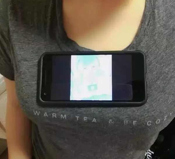 出乎意料的引起了岛国妹子们的关注,有张高中生将手机放在胸部当做支架的插画,意外在日本引发了效仿狂潮。