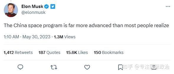 在5月29日神舟十六号载人飞行任务,美国太空探索技术公司(SpaceX)首席执行官埃隆·马斯克30日表示,中国的航天工程计划比大多数人意识到的要更加超前