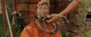 受害者喷溅出的鲜血染红了灯,白发苍苍的老者在血色中浴火重生,翩翩起舞。