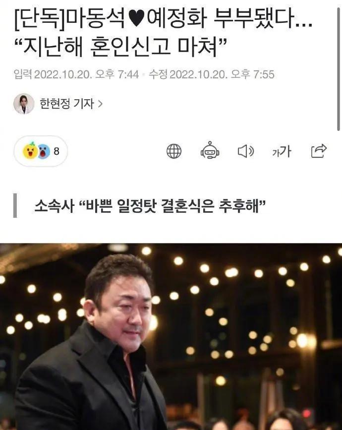 晚间,韩国知名演员马东锡被曝已经结婚,消息一出,同样收获满满祝福。