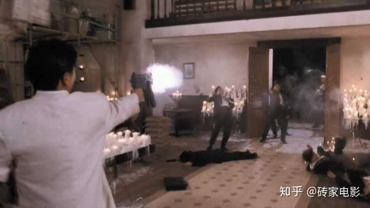 多机位的运镜方式,吴宇森非常喜欢用多台摄像机,从多个机位以不同的速度去捕捉同一个动作,然后通过剪辑来彰显动作的美感。