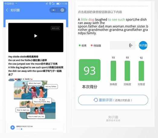 01 AI测评:课程自带的AI测评可以帮助老师自动化的对学员的语音类作业进行纠音评分,解决语言学习类内容过去只能依赖老师听后进行主观评估,导致成本高,效率难以保证的问题。