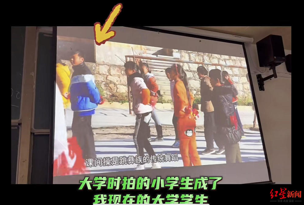 “8年前,我拍摄的纪录片中出现过的小学生,今天在课堂上认出了自己。”近日,云南红河学院新闻传媒学院的薛老师在网上分享了一条视频,表示她在给本校广播电视学专业的大二学生上《纪录片创作》课时,播放了自己的研究生毕业设计纪录片。下课后,班里的男生小王在同桌的陪伴下羞涩地走上讲台,称课上播放的那条纪录片正好拍到了儿时的他。老师和学生“相认”后都惊喜万分,感慨“这是时空交错的瞬间”。