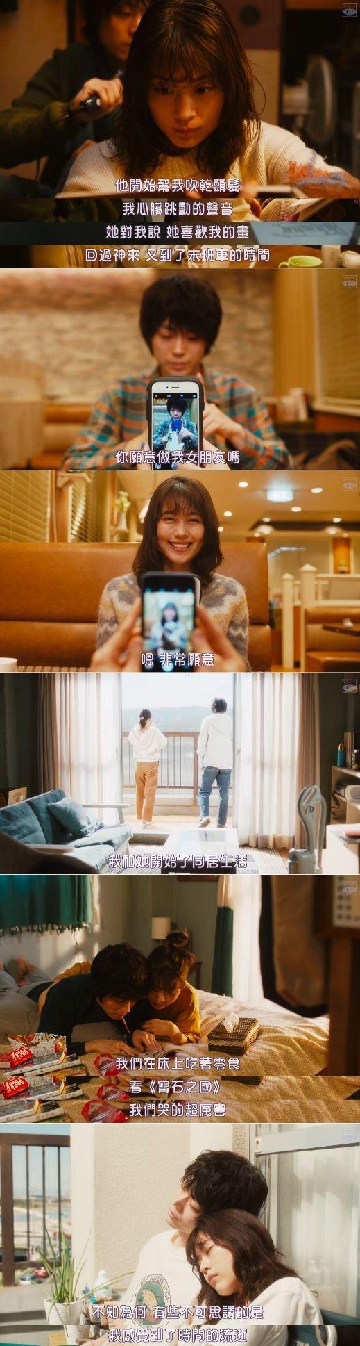 还是忍不住再一次强调,电影对这份文艺青年式的爱情的描述是那般精准,双方精神世界百分之一百的契合,有说不完的话,聊不完的天。他们在最后一份甜品吃完前相互告白,在人行横道的红灯前接吻,在杂乱的出租屋里缠绵三天三夜,在新年到来前捡到一只猫,在合租的房间里趴在床上一起看漫画看到落泪。然后慢慢的,随着时间过去,他们毕业,找工作,他们的生活节奏和重心不再完美契合,有人走得快有人走得慢。他们开始没有办法再一起追新出的番,曾经共同热爱的电影重映也没有办法一起去看,他们有了嫌隙,有了距离,有了矛盾,渐渐的失去了共同语言。