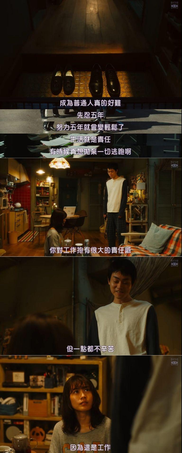 说起来,苏打本身作为一个不那么文艺感强的演员,加入坂元的世界带来了一种不一样的感觉——演绎大学的时候真的是软软的,成为社会人后清爽中带着沉重的现实感,严肃与麻木。主角两个人演技都特别自然,让人更觉得是一个发生在身边的故事:四年,随着时间的变化,他们不再穿着运动鞋和帽衫,剪短了头发,穿着黑色的皮鞋。