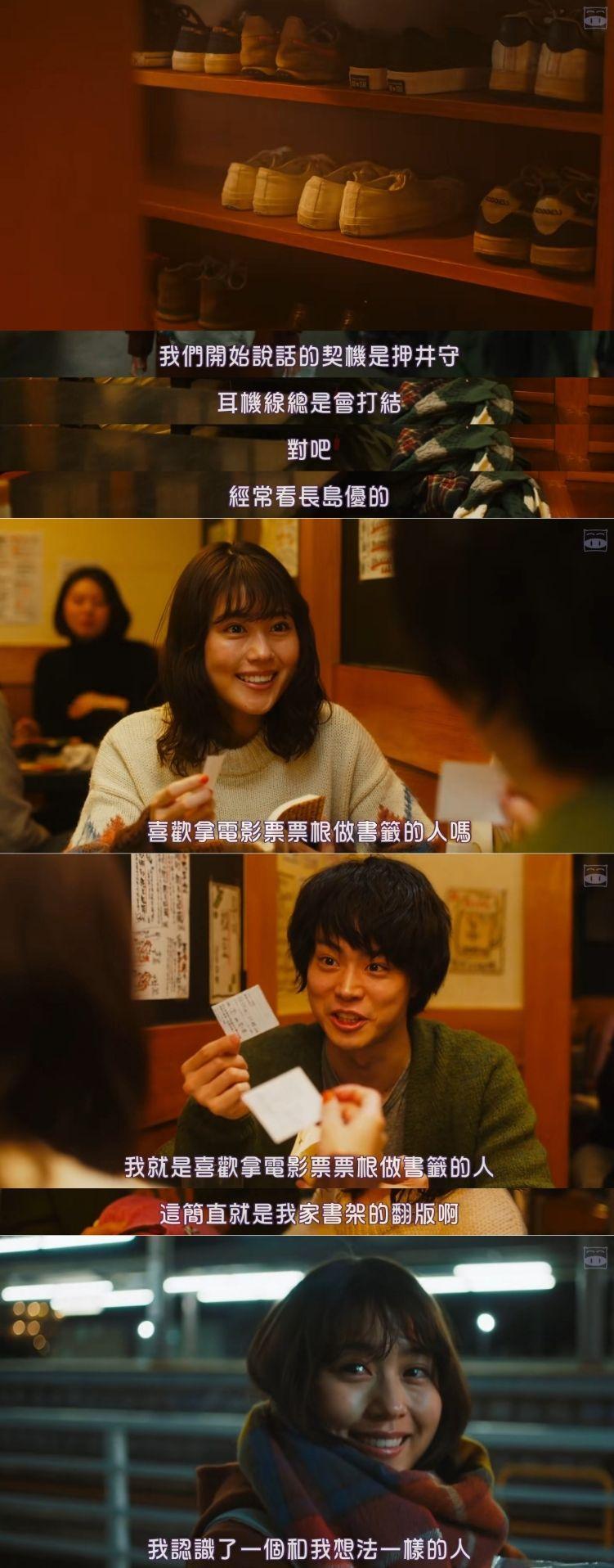 真的,就是这么神奇,就像电影里的苏打和村花,百分之百的合拍,他们热爱着同样的文艺作品,去过同一场演唱会,买过同一场门票却同样错过的奇怪的展览,他们对电影、音乐、书籍有着高度吻合的喜好倾向,他们对世界有着同样的好奇,他们就那样相遇,在错过末班地铁的时刻。他们开始互相生出好感,在内心里忐忑着该如何告白。电影用画外音的方式,让观众以上帝视角观摩着一场完美爱情是如何展开,继而如何深入,最后如何散场。