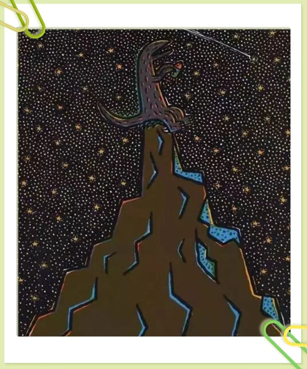 一天晚上,当小翼龙抱着红果子回来时,看见霸王龙正瞪着眼睛,嘴里叨着鱼呢。