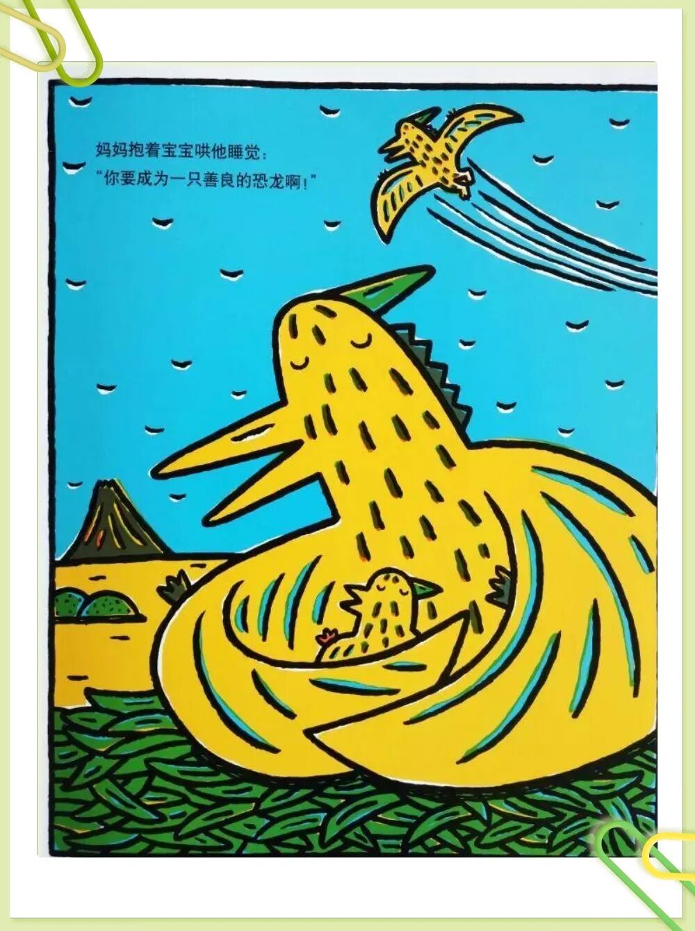 妈妈抱着宝宝哄他睡觉:“你要成为一只善良的恐龙啊!”