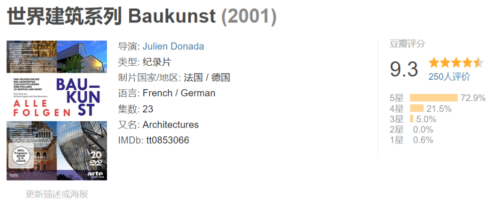 23 集纪录片,每一集讲述一座 19 世纪和 20 世纪的杰出建筑及其建筑师。