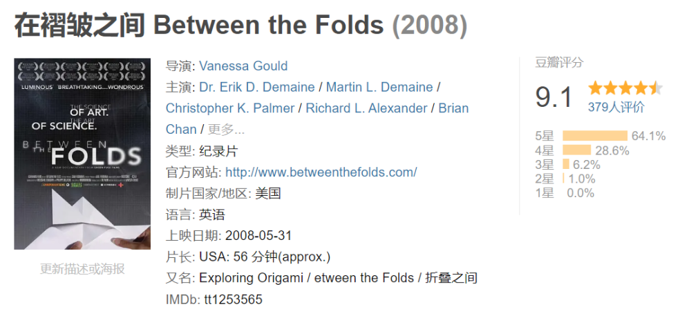 描绘了一群优秀的艺术家和古怪的科学家(来自麻省理工学院和美国国家航空航天局),他们毕生致力于现代折纸这种不太可能的媒介。通过他们用纸重新诠释世界的决心,他们激发了对艺术、形式、表现力、创造力和意义的迷人混合。