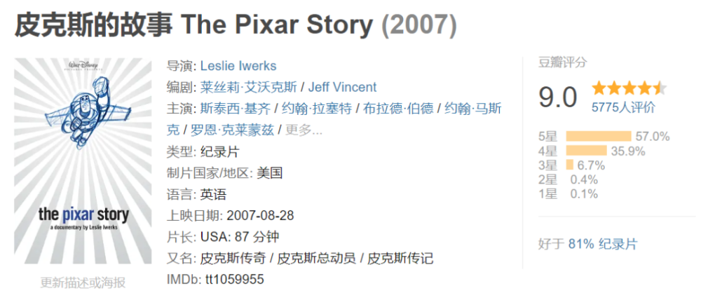 这部花费6年时间制作而成的纪录片,聚焦了动画业巨头皮克斯的发展史。片中主要采取的是面对面采访的形式,还穿插了皮克斯创作的一些顽皮形象的短片,其中更包括拉塞特获得学生奥斯卡奖的短片作品。众多被访问者——从汤姆·汉克斯、蒂姆·艾伦、比利·克里斯托到乔治·卢卡斯以及众位皮克斯的动画制作人——都尽可能详尽地解释了每部影片要达到特定艺术效果所需的技术条件。