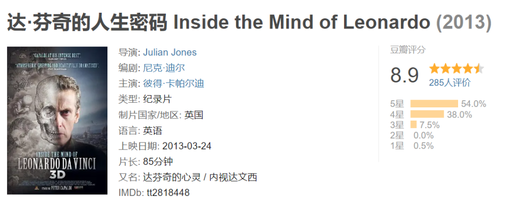 备受赞誉的 BAFTA 获奖演员彼得·卡帕尔迪(Peter Capaldi)在一部独特的戏剧化纪录片中将伦纳德·达·芬奇(Leonard da Vinci)鼓舞人心的世界变为现实