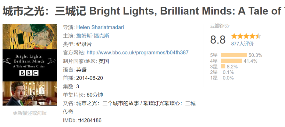 二十世纪期间,世界各大城市纷纷崛起,这些城市启发了世人的眼光,但有时候一座城市可以定义一整个年代;某一座城市会突然涌现无比的生机,成为新艺术和思维的集中地,进而影响了整个世界。城市之光这个系列讲述了三座杰出大城在三个不平凡年代的故事: 1908年的维也纳,1928年的巴黎和1951年的纽约。城市之光系列的主持人James Fox是剑桥大学艺术史博士,他带领观众走遍维也纳、巴黎和纽约,以生动趣味的方式介绍这三个了不起的城市如何塑造了我们现在的大众文化以及生活方式。三集分别为:《维也纳1908》、《巴黎1928》、《纽约1951》。