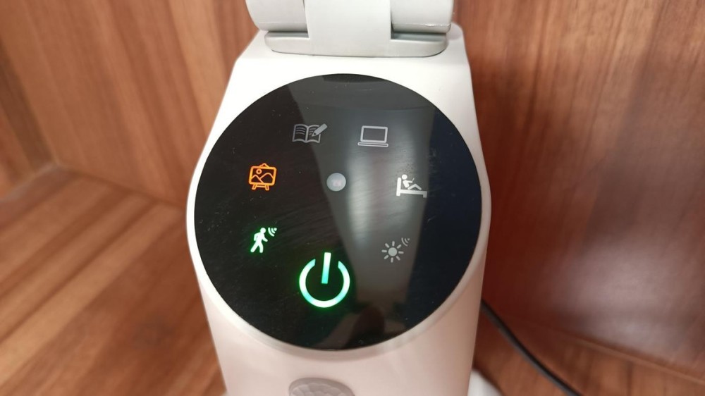 操控区在腰部,硕大的开关键非常醒目,圆周分部有高清创作、阅读学习、轻松休闲、舒缓助眠四种模式控制键和节能模式、智能光照键。