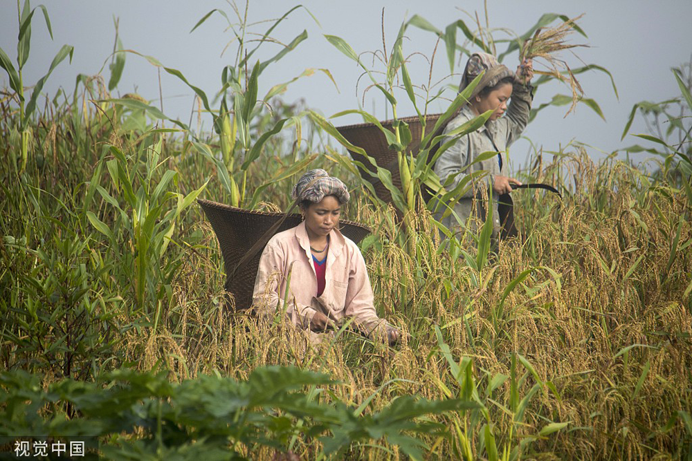 当地时间2022年10月9日,孟加拉国班达班,土著妇女在山上劳作。视觉中国 资料图