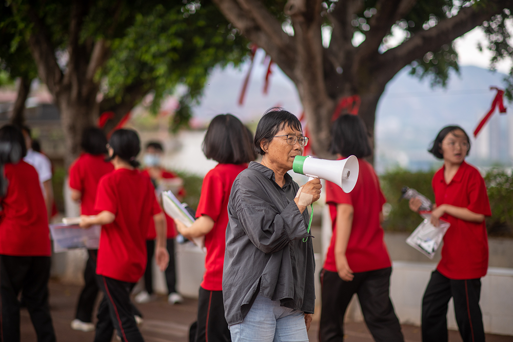 6月7日,张桂梅组织走出考场的学生准备返回学校。这是张桂梅的第13次送考。新华社 资料图