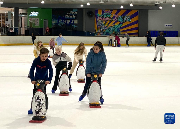 约翰内斯堡:冬日冰场---7月15日,人们在南非约翰内斯堡的一处滑冰场滑冰。